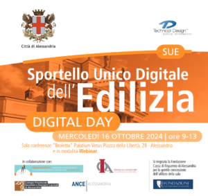 In occasione dell’inizio di questa cooperazione, il 16 ottobre dalle 9.00 alle 13.00 è stato organizzato un Digital Day volto a indagare tutte le principali funzionalità del software GisMaster SUE. Tale evento si terrà sia in presenza, nella sala conferenze “Broletto” di Palatium Vetus ad Alessandria, che in modalità webinar. In quest’occasione si indagheranno le modalità per accedere al portale, il funzionamento della piattaforma e le prassi per applicare tutte le diverse funzionalità. Infine, verrà spiegato come chiedere assistenza tecnica alla Technical Design in caso di bisogno e verrà lasciato spazio ai quesiti irrisolti dei presenti.